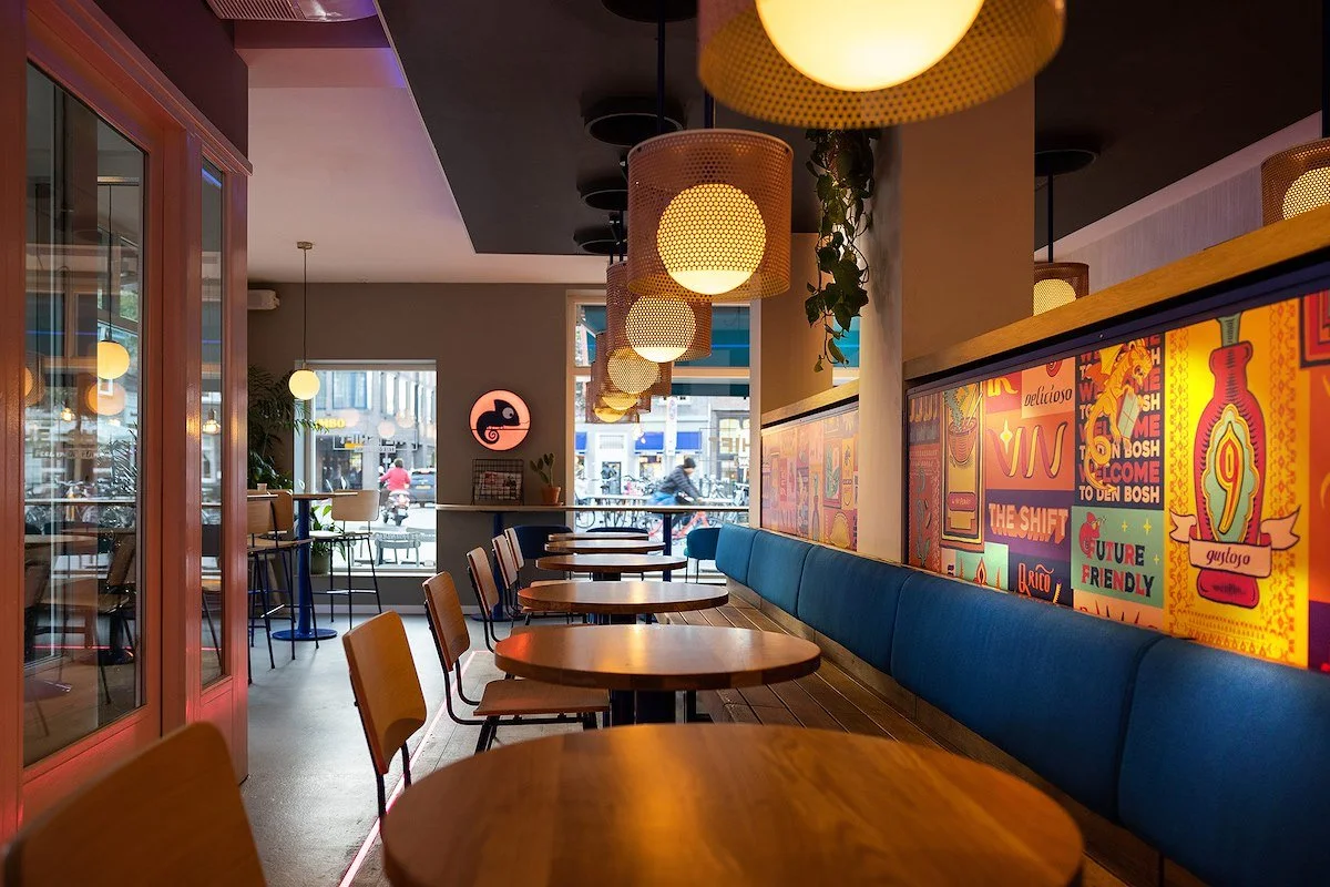 The Shift, feel good food, is een restaurant in Den Bosch dat gedurende de dag transformeert, zoals het kameleon logo al doet vermoeden. Op de dag stap je in drie verschillende werelden; de ochtend, de middag en de avond shift. Niet alleen het menu maar ook het interieur wijzigt op aangestelde tijdstippen mee door middel van bewegende delen.